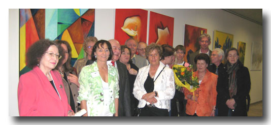 Ein sehr harmonisches Bild zeigt Anna Haindl. In „Winter an der Paar“ ist gelbbraunes, abgestorbenes Schilf, umgeben von einer Schneelandschaft zu sehen. Edda M. Sedlmeiers Bild „Sonnengeflecht“ fasziniert in zweierlei Hinsicht. Zuerst ist eine Landschaft in kühlen Blautönen zu sehen. Auf den zweiten Blick wird eine liegende Frau sichtbar. Ein roter Feuerball liegt im Zentrum ihres Körpers und wärmt Mensch und Natur gleichermaßen. Als weitere Aussteller des Kunstkreises zeigen Cilia Amorth, Sigrid Günther, Margarethe Romsauer, Sophie Spies, Susanne Spies-Geiser und Hanne Thielitz ihre Werke im Finanzamt.